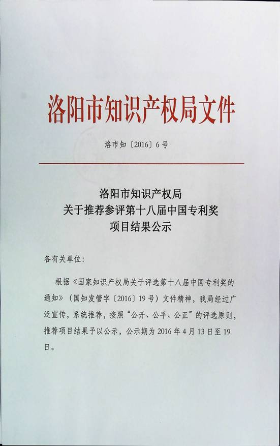 中國***獎每年評選一次,今年為第十八屆。公司上述***契合了當(dāng)前大氣污染和霧霾治理的環(huán)境熱點(diǎn)問題,在眾多參評***中脫穎而出,被高新區(qū)和洛陽市推薦給了國家知識產(chǎn)權(quán)局參加本屆中國***獎的評選,這是公司***管理工作中的一件具有標(biāo)志性意義的事件。